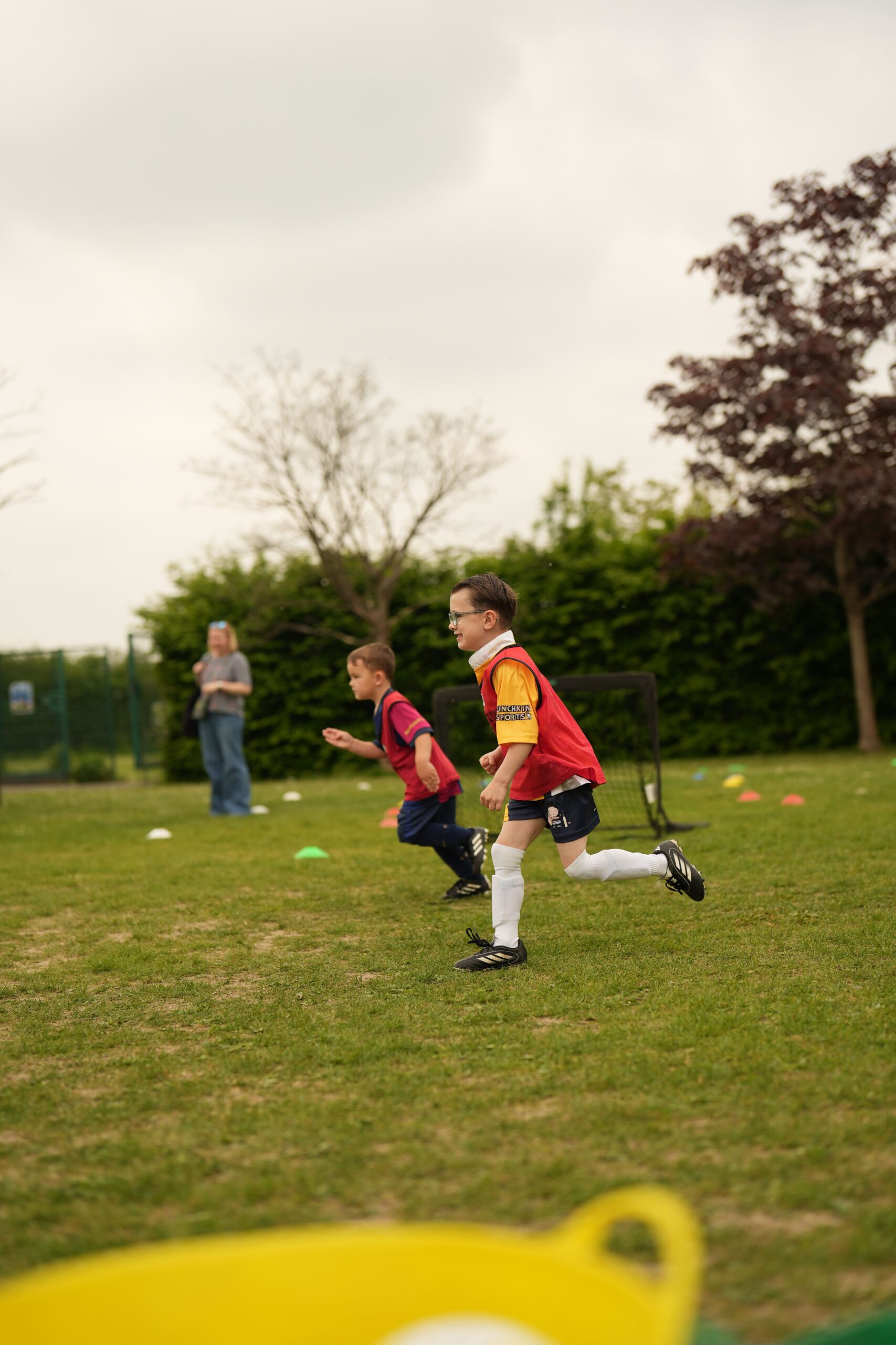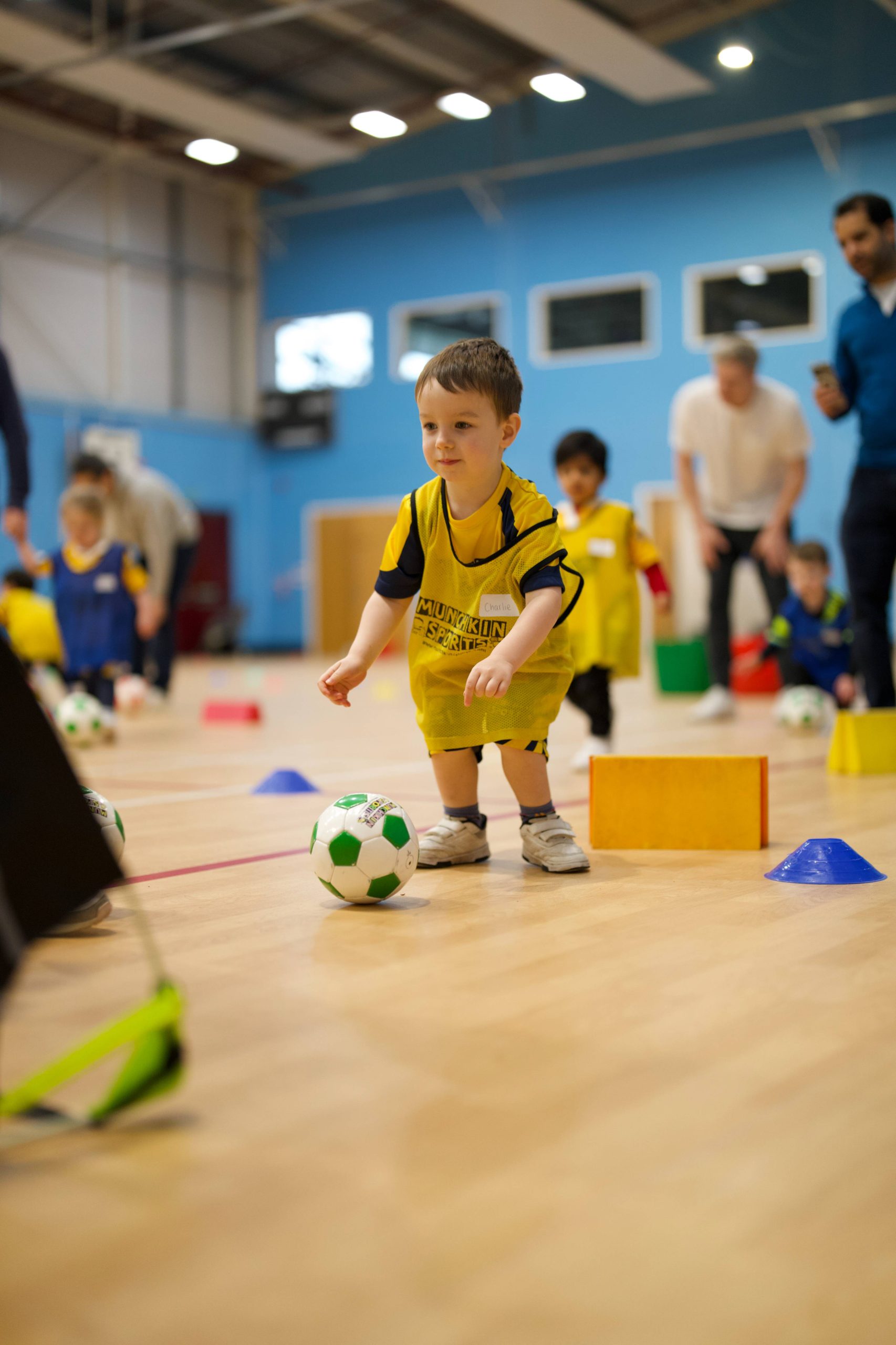 Our middle class is where we encourage our Munchkins to go it alone (although if they do still need parent help, that’s fine too!). During this class we will look to further develop all of the skills learnt in the first class; more ball striking, dribbling, stopping the ball and of course scoring lots of goals! There is still a huge emphasis on fun, teamwork and the development of social skills through our games and pods!